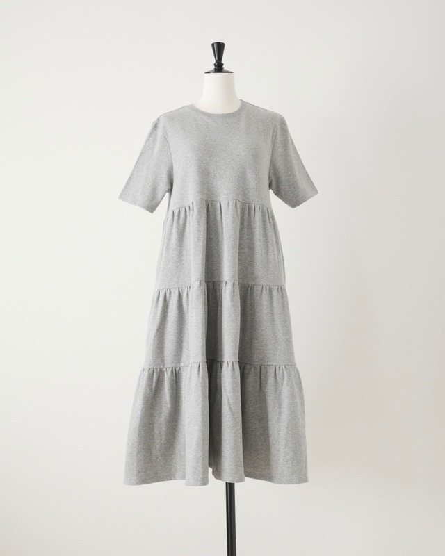 made in Japanで仕立てた、大人な小柄女性のための洗練されたデイリー服。 【detail 】 •通常の裏毛生地よりも糸が細く、裏面のループが小さく密に編み込まれた、上質なミニ裏毛素材で仕立てた上品ドレス。 •柔らかく、なめらかな肌触りで、毎日袖を通したくなるような、病みつきになる優しい着心地が特徴です。 •裏面のループが空気を含むことで保温性を確保しつつも、厚すぎないため通気性も良く、重ね着や季節の変わり目に最適な素材感。 •衿元はリブをあしらい、三段の切替位置にたっぷりとギャザーを寄せたティアードデザイン。小柄女性がバランスよく着こなせるサイズ感とボリューム感に拘ってお作りしました。 •美しい落ち感もあり、着るだけで華やかさと大人の抜け感を演出します。 •背中には、hitomiのオリジナルロゴプレートを添え、後ろ姿もエレガントな印象に。 •シワになりにくいウォッシャブル素材で、イージーケアなのも魅力。 •綺麗めからカジュアルコーデまで、スタイリング次第で幅広いシーンを楽しめる万能アイテムです。 【color 】 light gray (ライトグレー) ※お使いのPC、携帯端末等の環境により、実際の製品と画像の色味が若干異なる場合があります。予めご了承ください。 【price】 ¥16,000+tax 【生産国】 日本 【素材】 コットン85%、ポリエステル15% •ご自宅で手洗い可能です。 ※生地の性質上、水洗いで多少のシワや縮みが起こることがあります。(型崩れ防止のため、形を整えて干してください。) ※タンブラー乾燥はお避けください。 ※アイロンは当て布をご使用ください。 【サイズ】 XS 着丈102.5cm / 身幅45cm / 肩幅38cm / 袖丈24.5cm S 着丈107.5cm / 身幅45cm / 肩幅38cm / 袖丈24.5cm ※上記寸法は、生産時に指示した寸法に従い記載しておりますが、生地や素材、縫製の性質上1~2㎝程度の寸法の個体差が生じる場合があります。予めご了承ください。 【モデル】 148cmでSサイズ着用。 【仕様について】 伸縮性:あり 裏地:なし(透け感なし) 生地の厚さ:普通 【返品・キャンセルについて】 大変申し訳ございませんが、不良品以外のお客様都合によるご注文確定後の注文内容の変更、商品の交換または返品は一切受け付けておりませんので、ご理解の程よろしくお願いします。恐れ入りますが、十分にご検討いただいた上で、今一度商品がお間違いないかご確認の上、お買い物をお楽しみ頂ければと思います。 万が一、商品に不具合等ございましたら、お手数ですが商品到着日より3日以内にご連絡くださいますようお願いいたします。返金の対応は承っておりませんので、交換での対応とさせて頂きます。またご連絡のない返品は固くお断りいたします。
