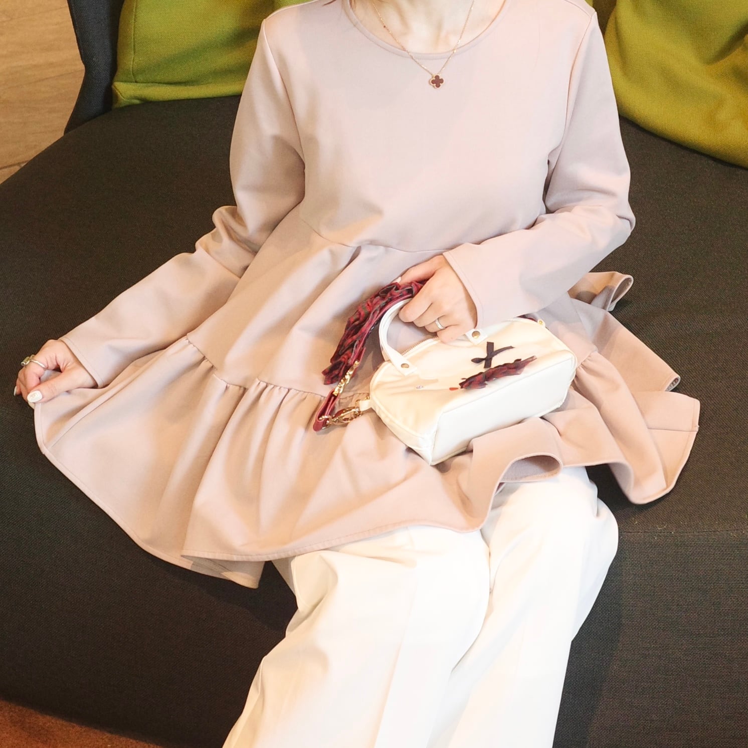 •フェミニンさとエレガントさを兼ね備えた色合いで、甘くなり過ぎず上品にご着用いただけます。