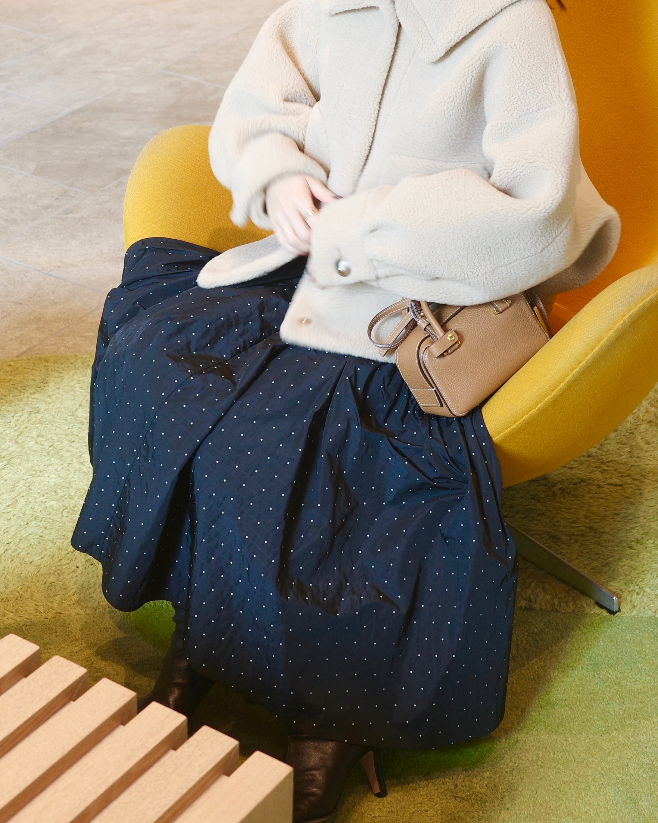 •見た目以上に軽量で、軽やかな着心地も魅力の一つ。見た目の美しさだけでなく、暖かさと快適な着心地も叶えます。
