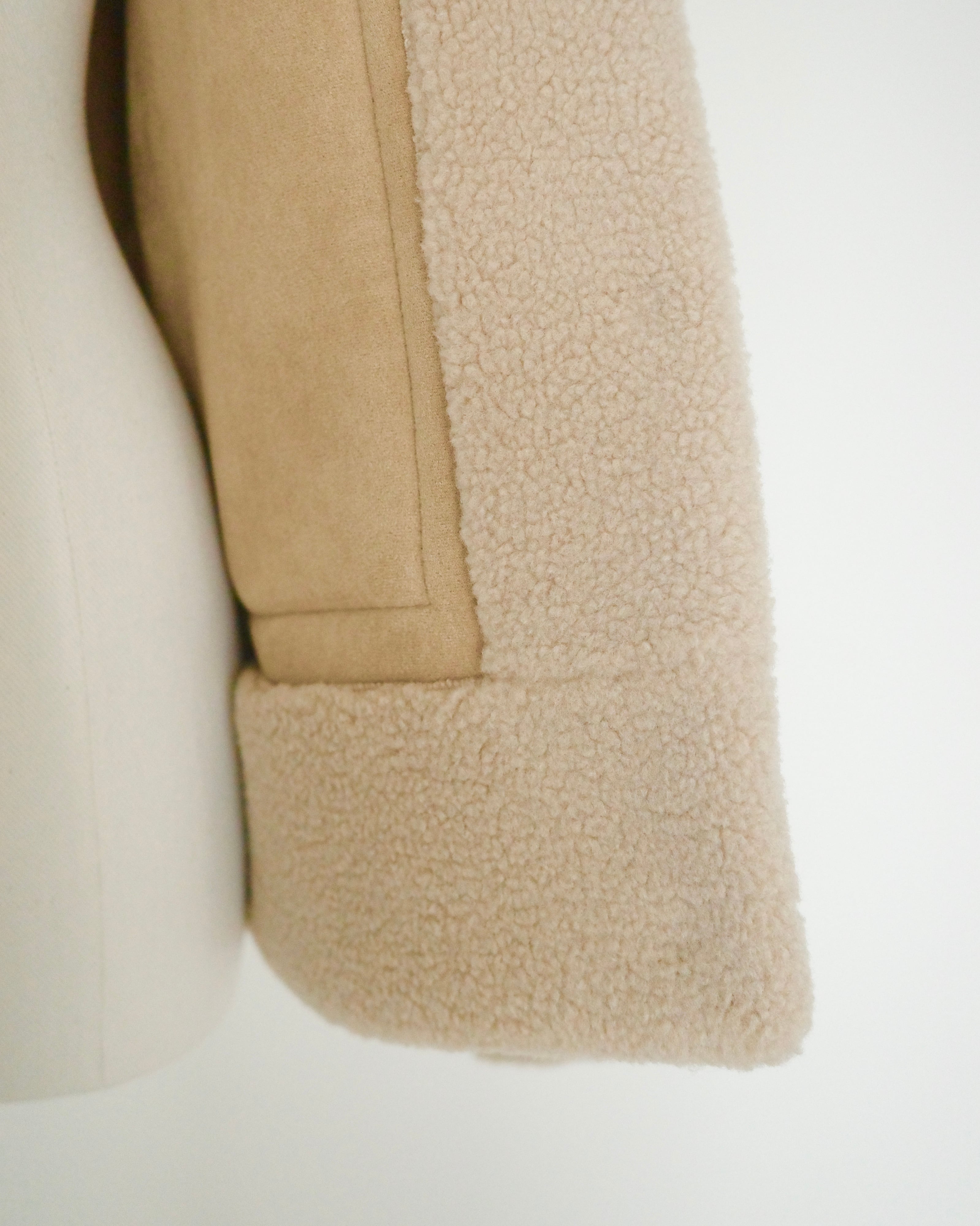 •ふんわりとした柔らかな肌触りが特徴の高級感溢れるエコムートン素材を使用。さらに、滑らかなスエード素材をボンディング加工することにより、上品で洗練されたボアコートに仕上げました。