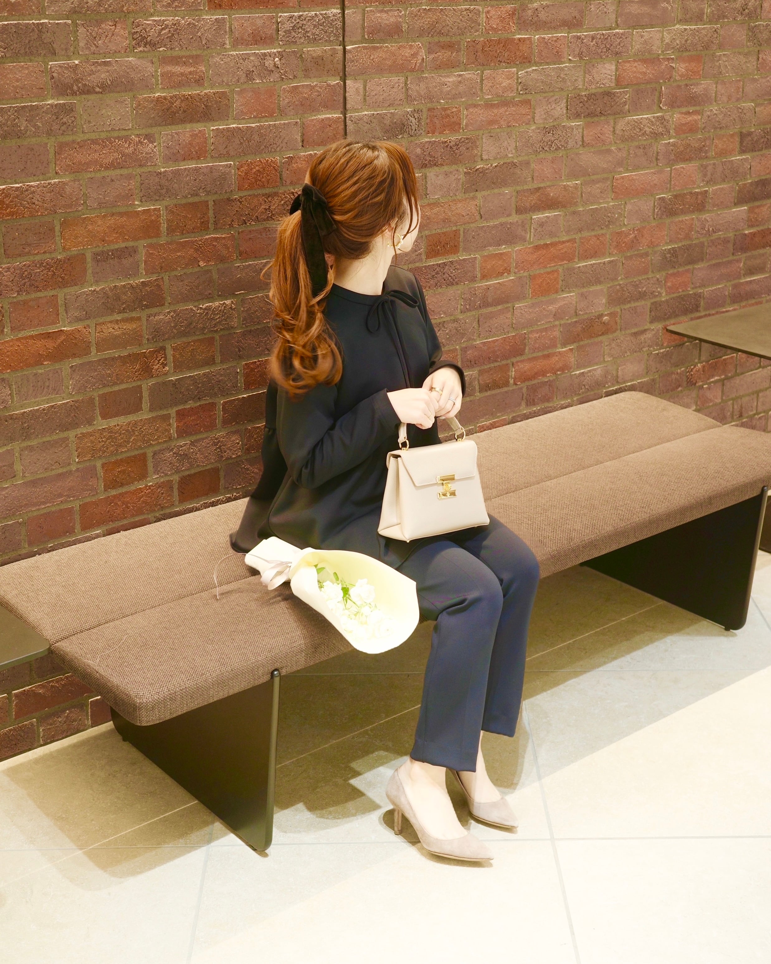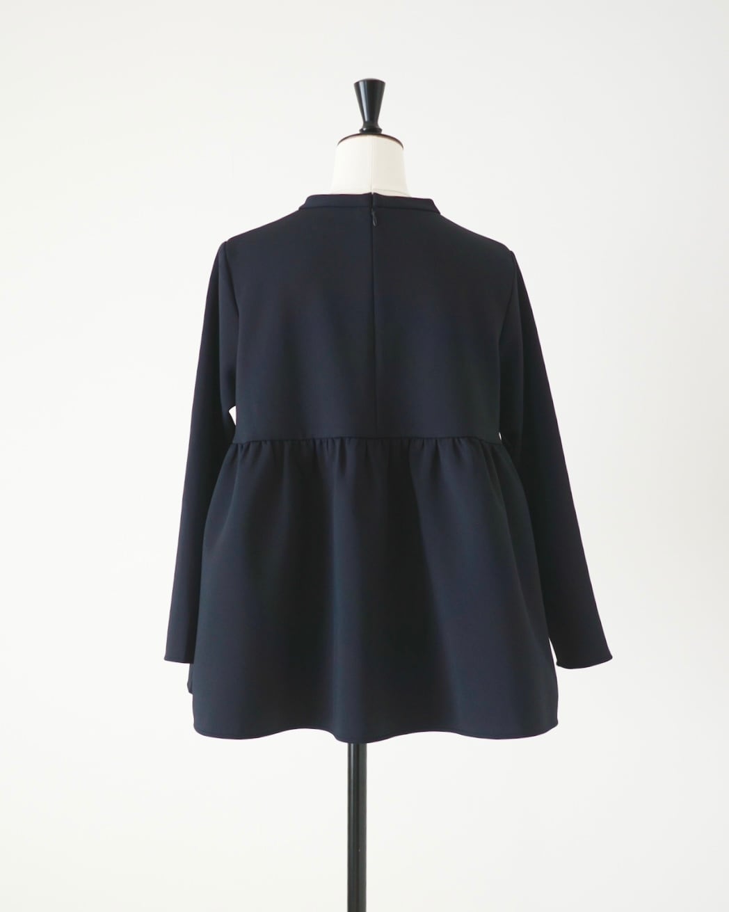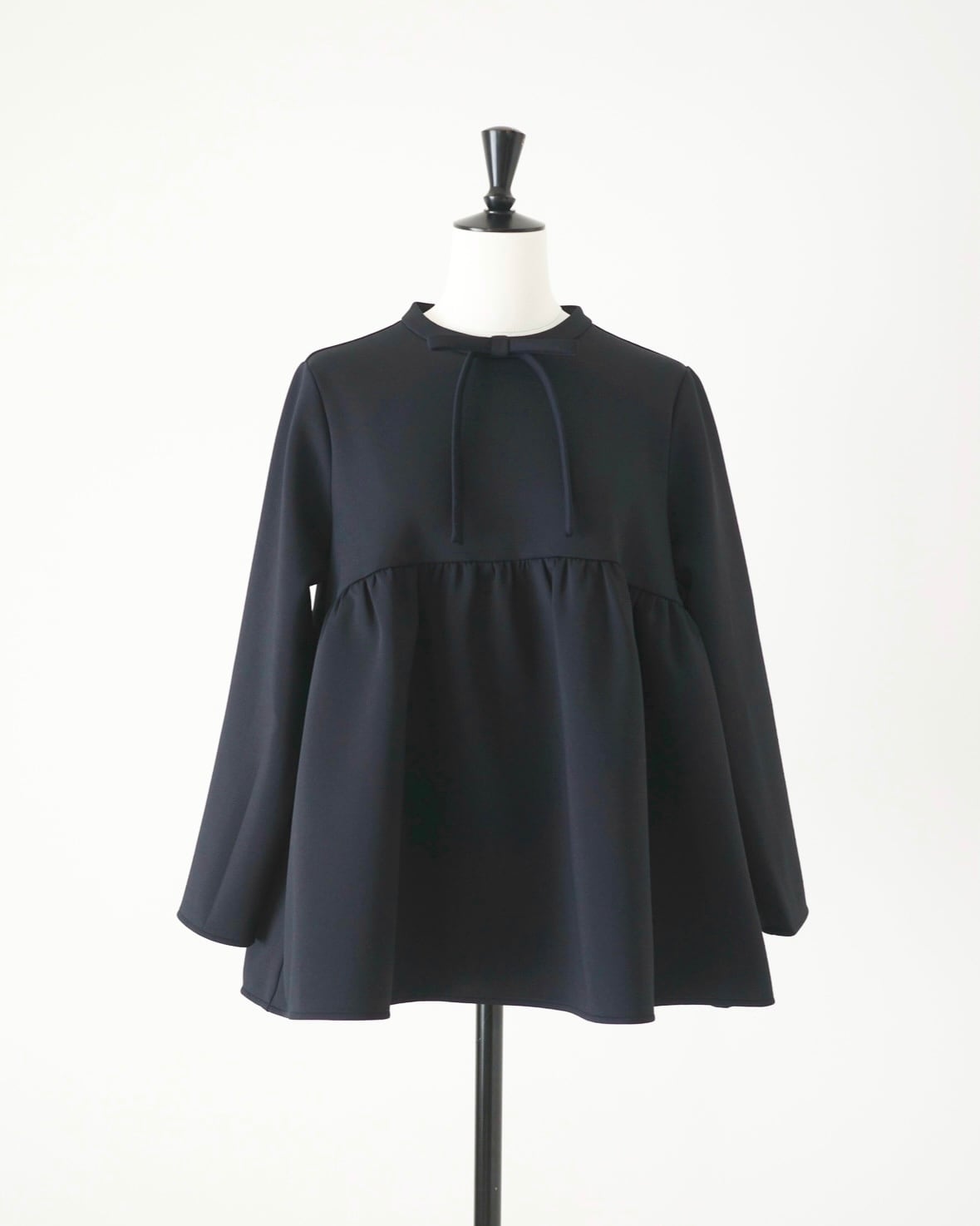 •胸下からふんわり広がるペプラムシルエットはウエスト位置が高く見え、スタイルアップ効果も。甘さときちんとさを兼ね備えた絶妙なボリューム感で、小柄さんがバランス良く着れるシルエットに仕上げました。