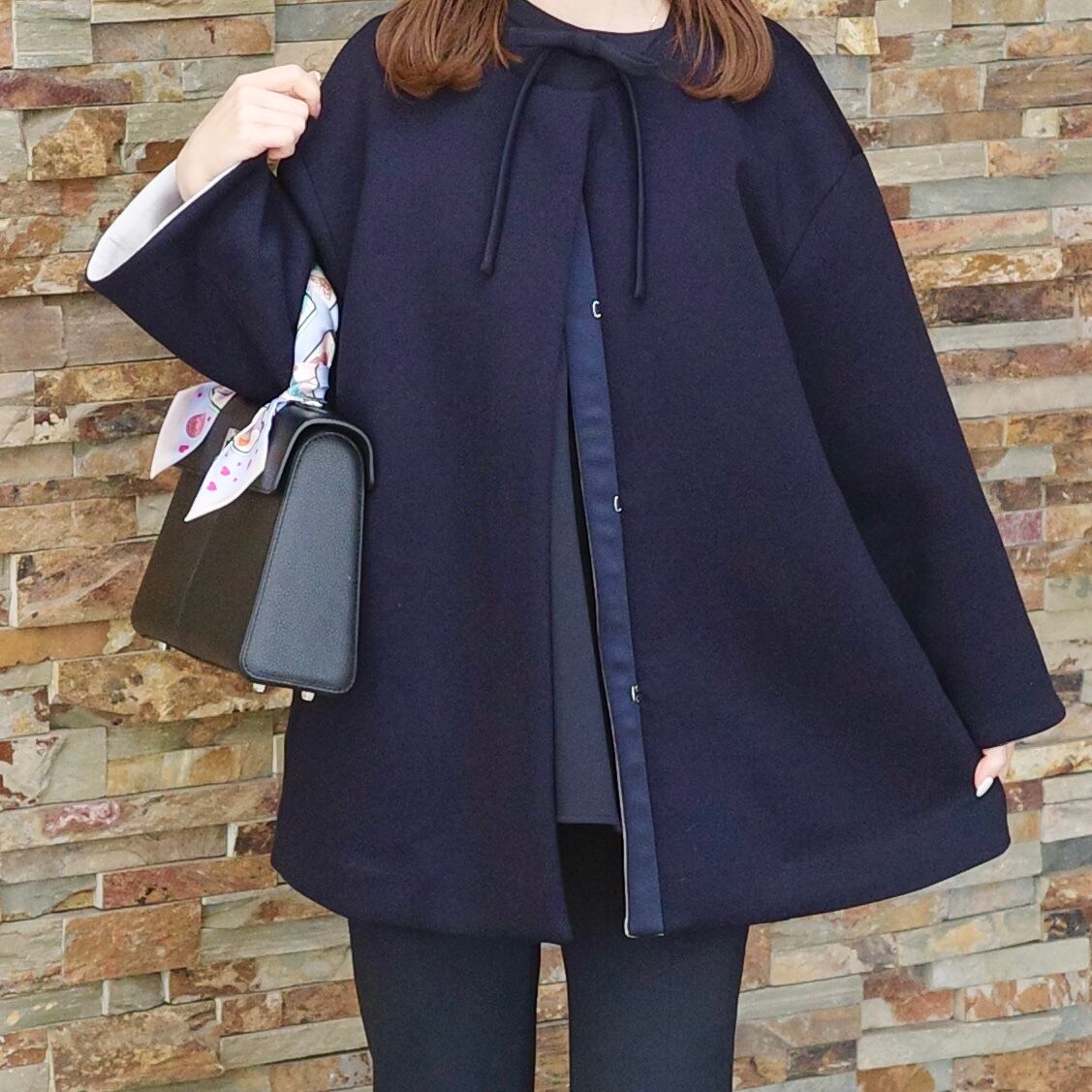 •ネックには愛らしいリボンを施し、顔まわりが華やかな印象に。リボンは備え付けのため、解ける心配もございません。
