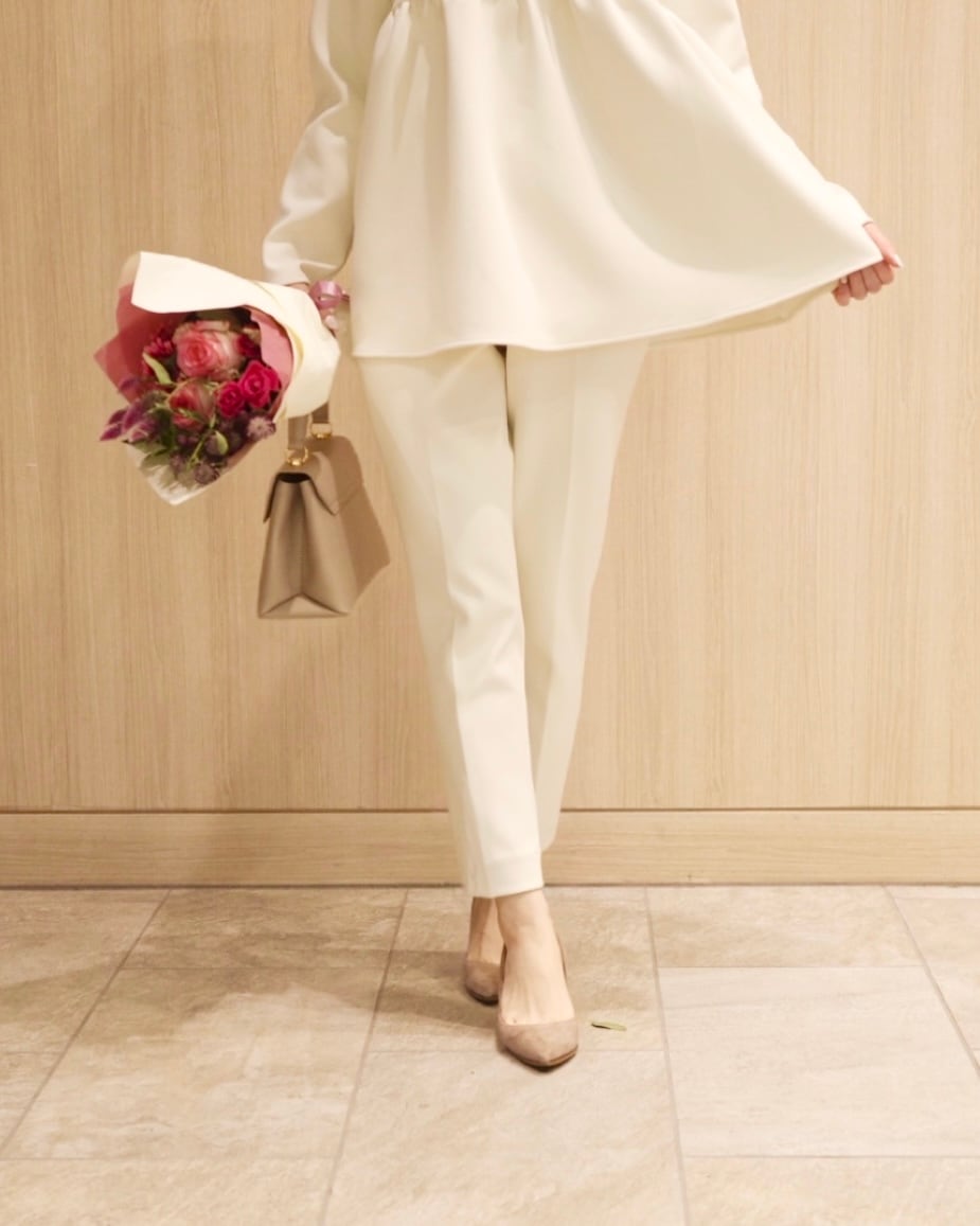 •裾に向けて細身になるテーパードシルエットのため、ふんわりしたトップスと合わせると、さらにスタイルアップが叶います。