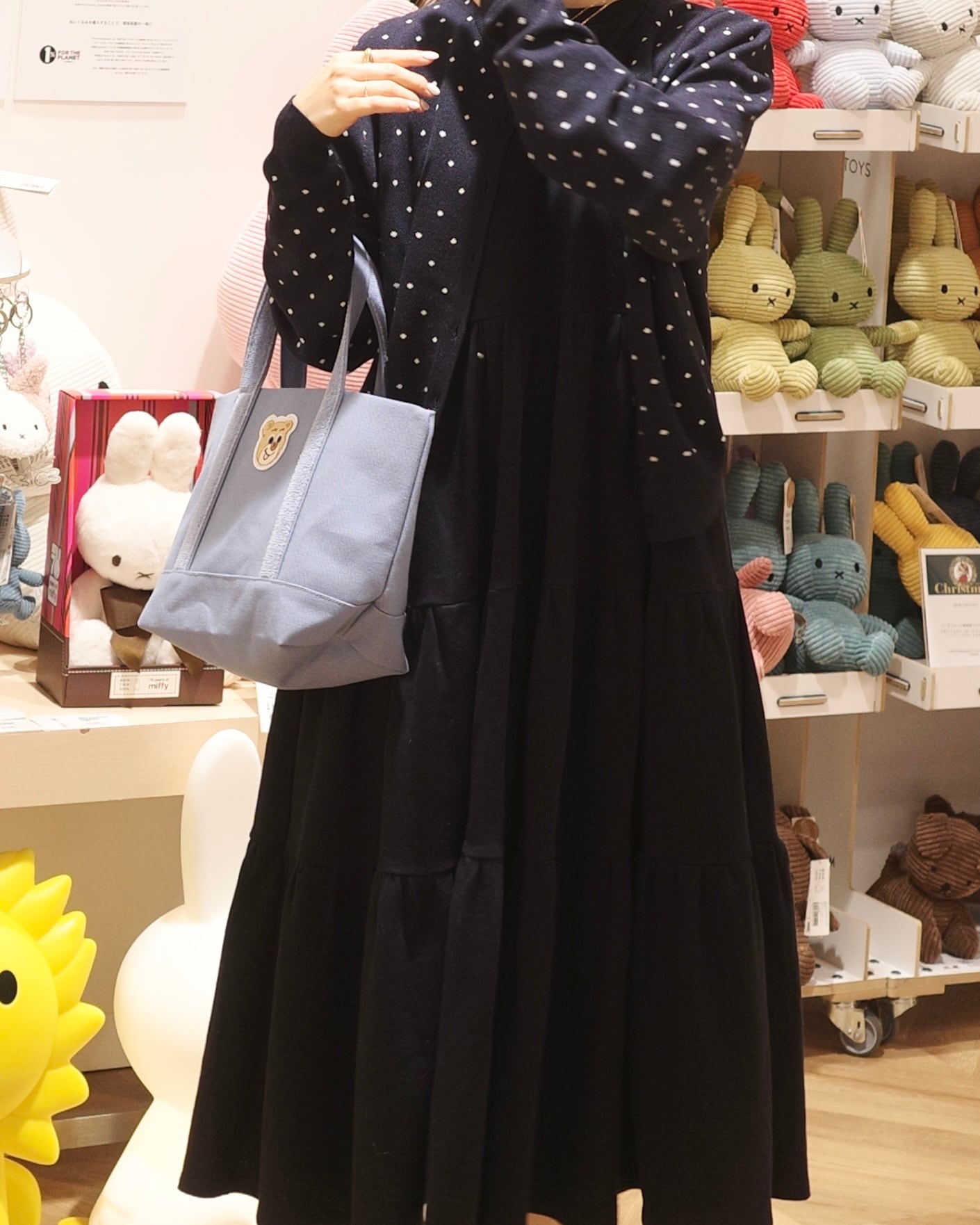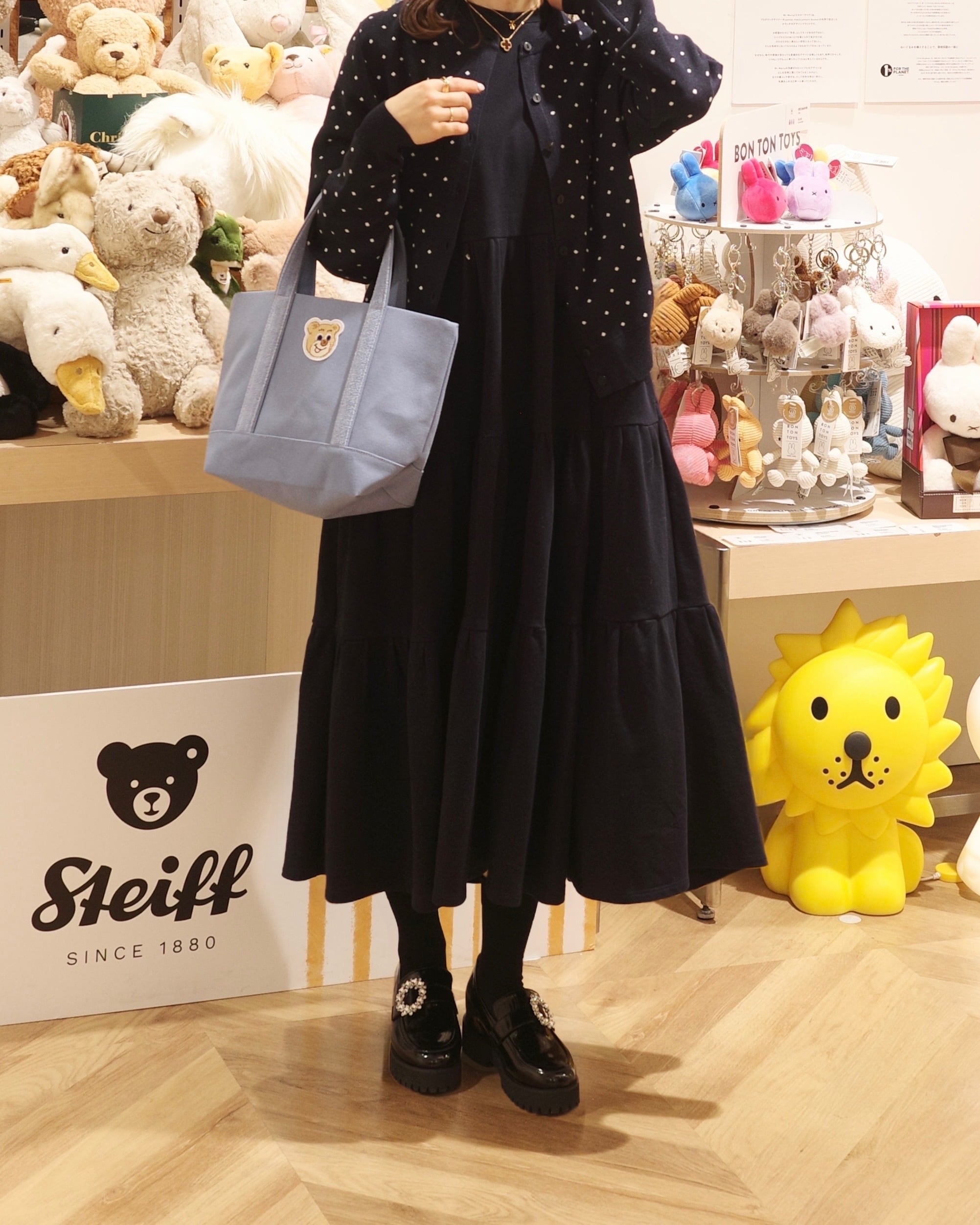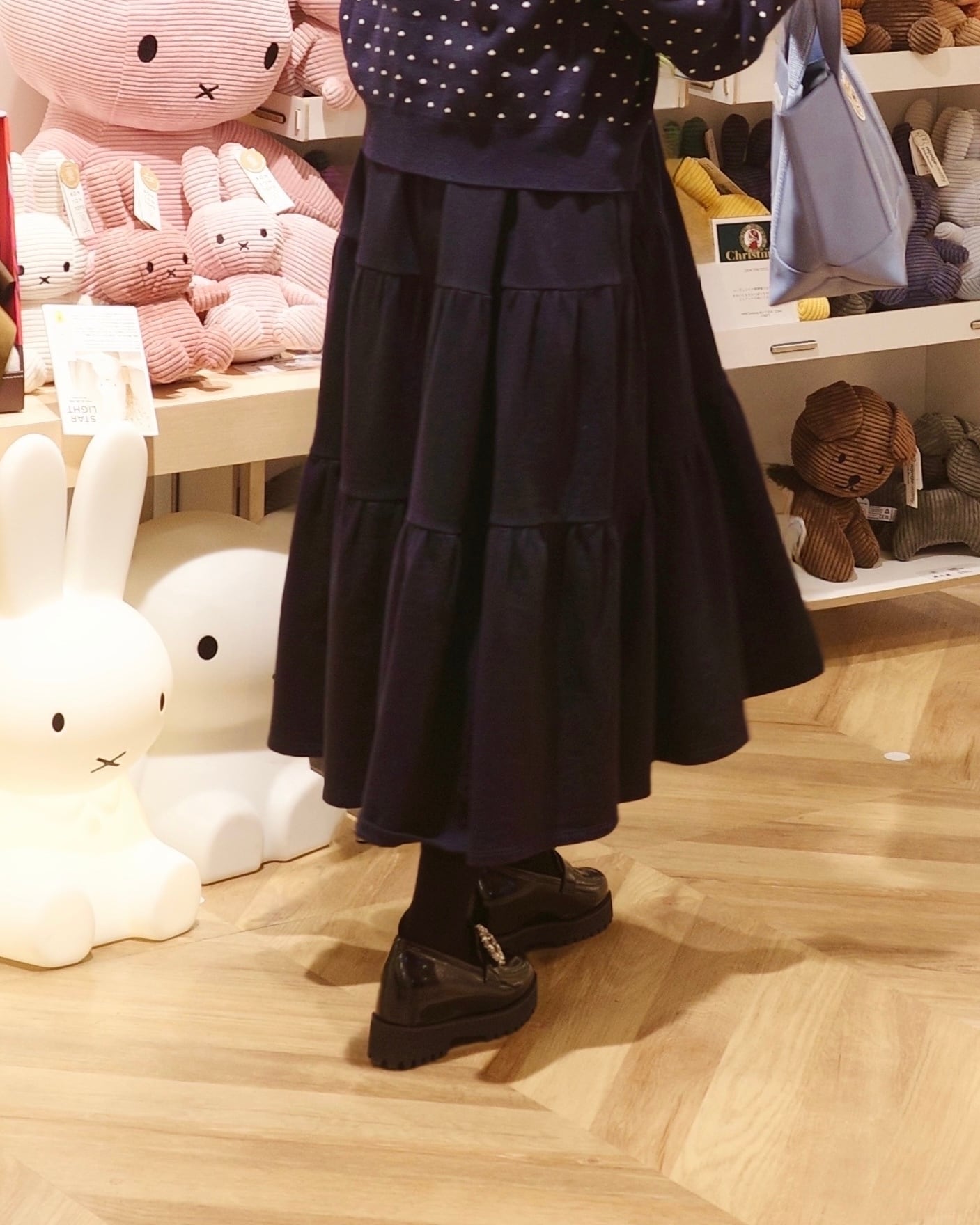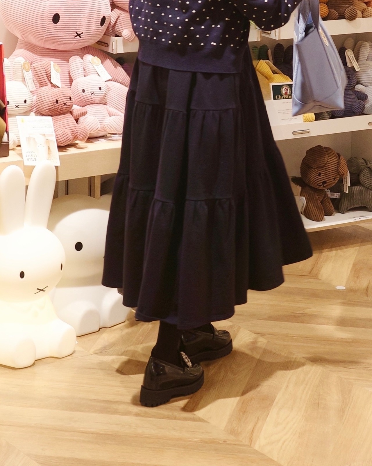 •衿元はリブをあしらい、三段の切替位置にたっぷりとギャザーを寄せたティアードデザイン。小柄女性がバランスよく着こなせるサイズ感とボリューム感に拘ってお作りしました。