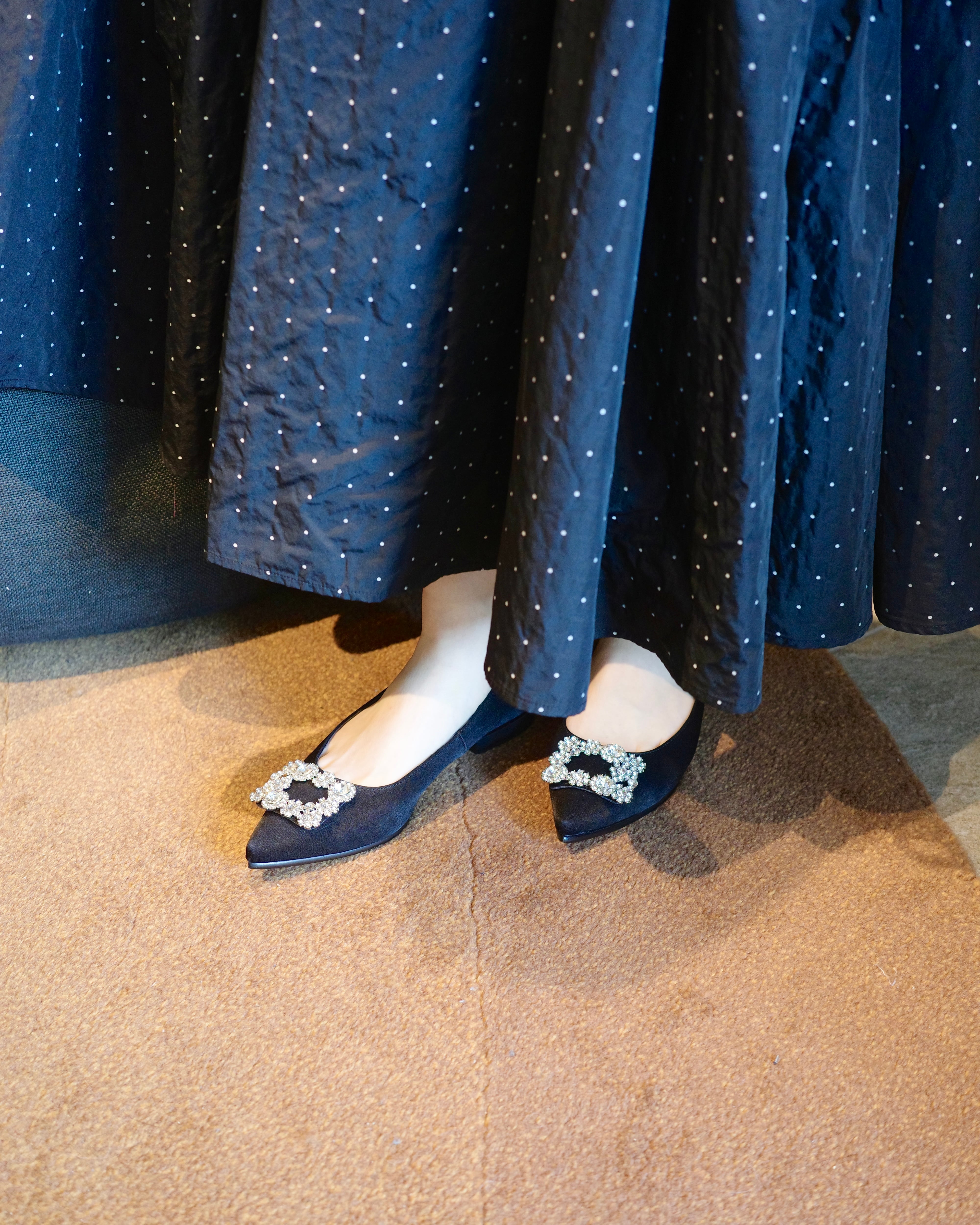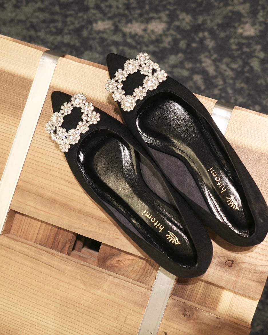 •ジュエリーのような輝きが華やぎを添える、hitomi初となるフラットシューズが登場!