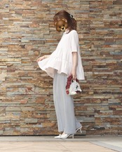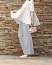 •センタープレスの入った、落ち感のあるワイドパンツで、ツータックのため、エレガントな印象でご着用いただけます。