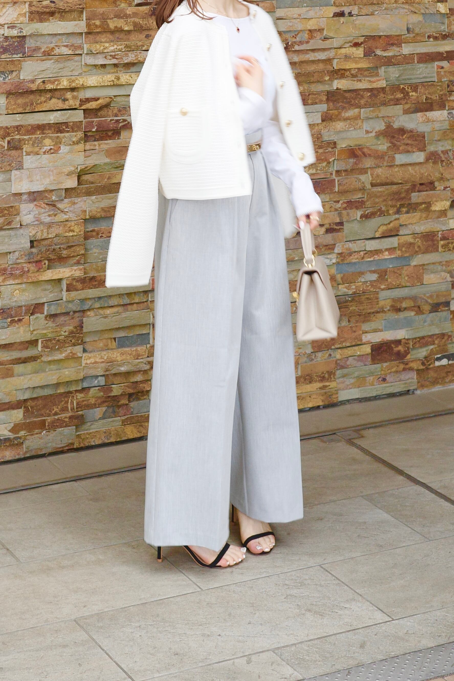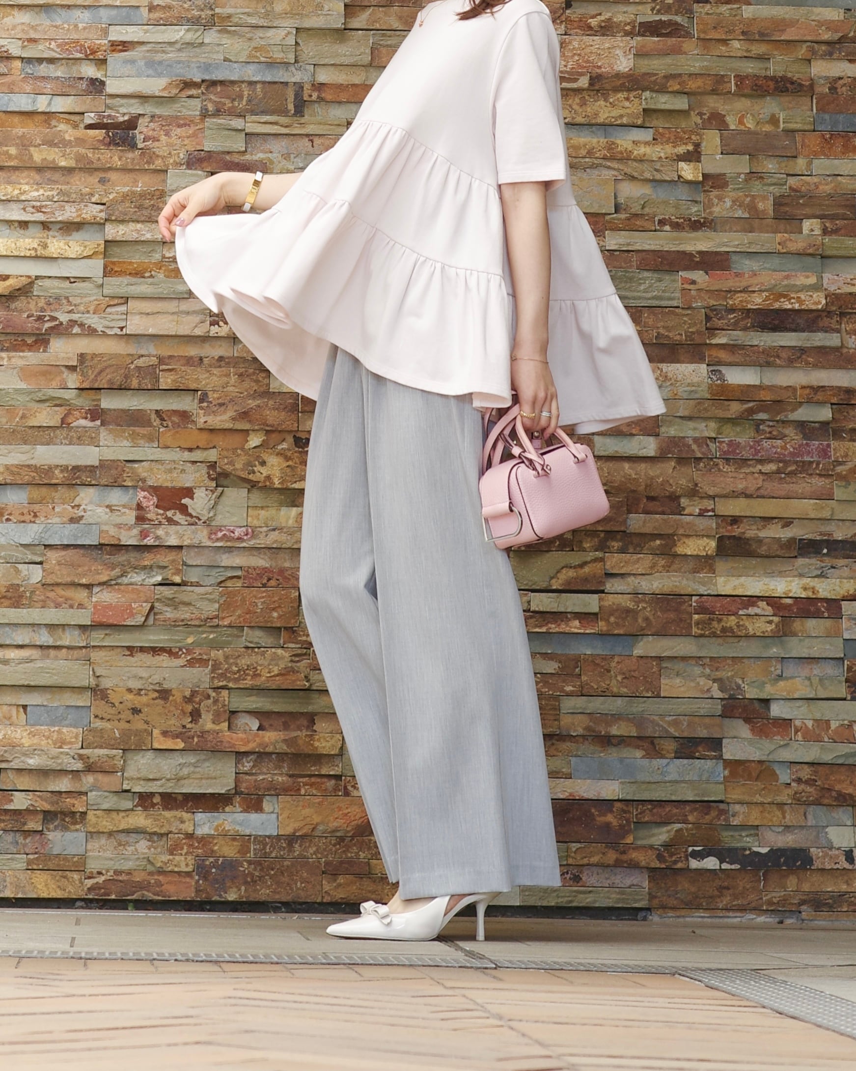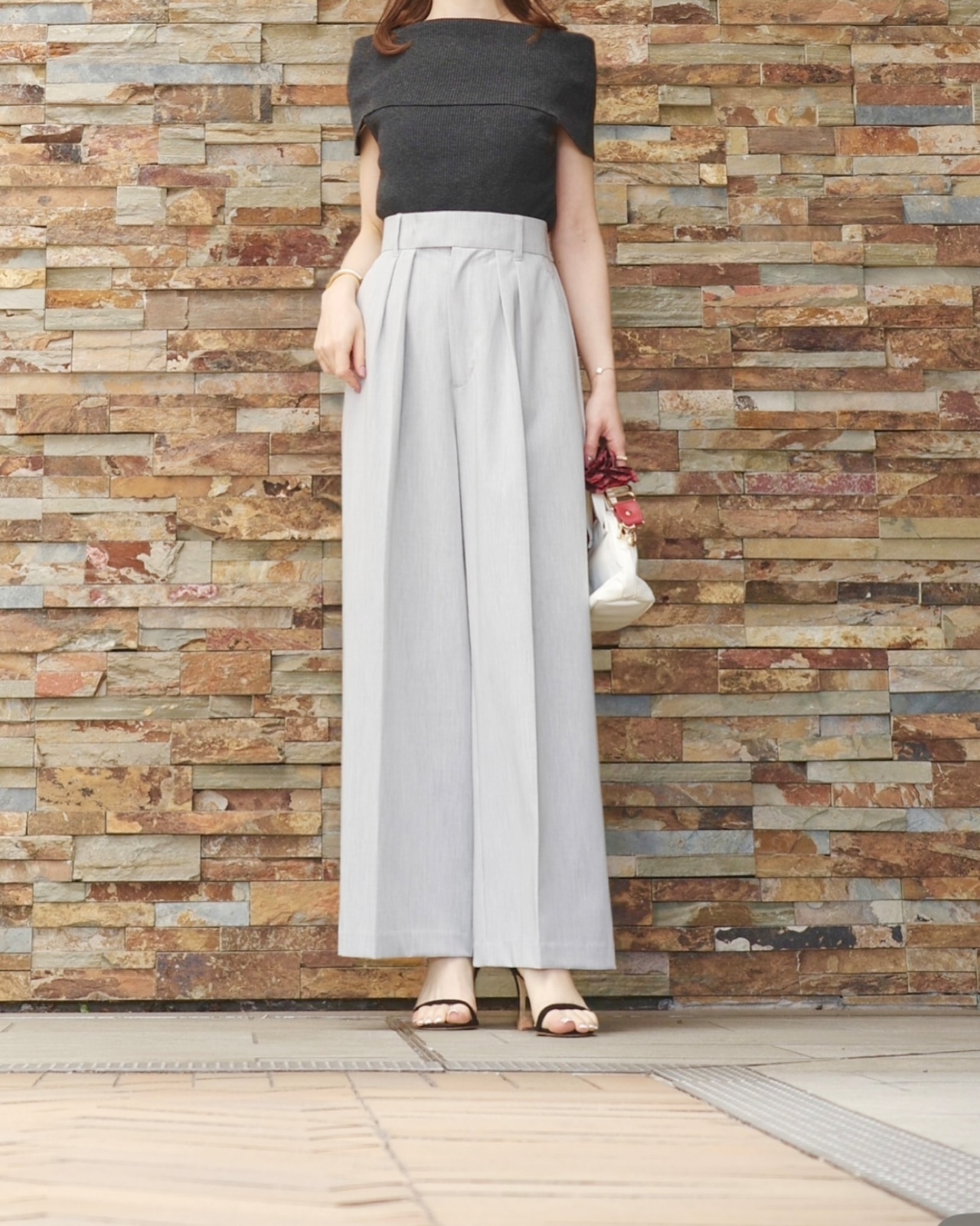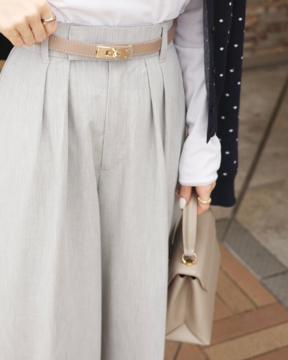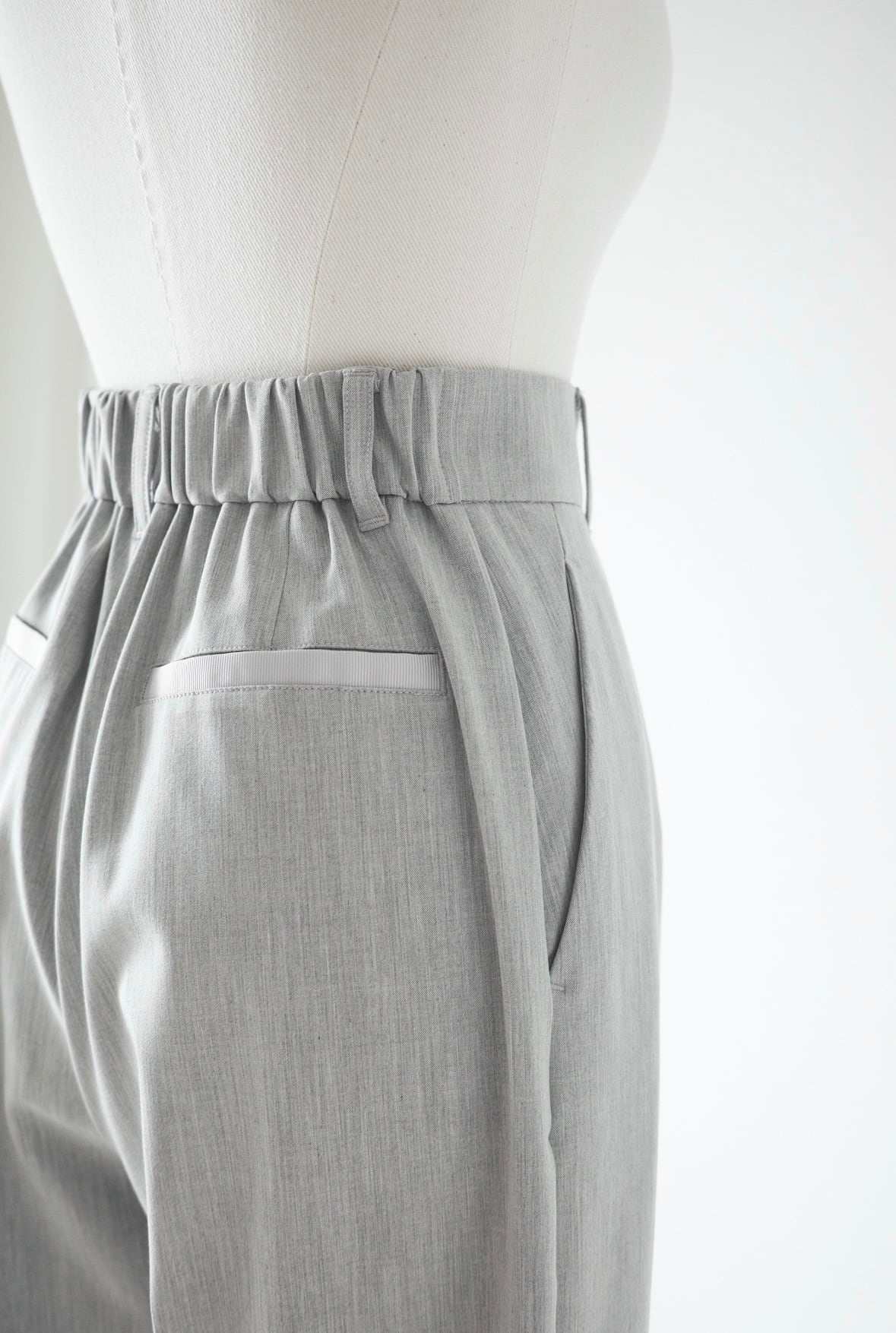 ribbon tuck pants / light gray