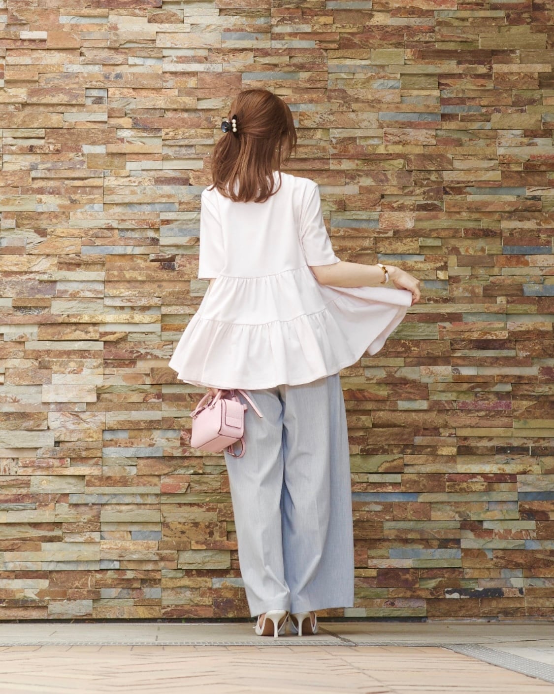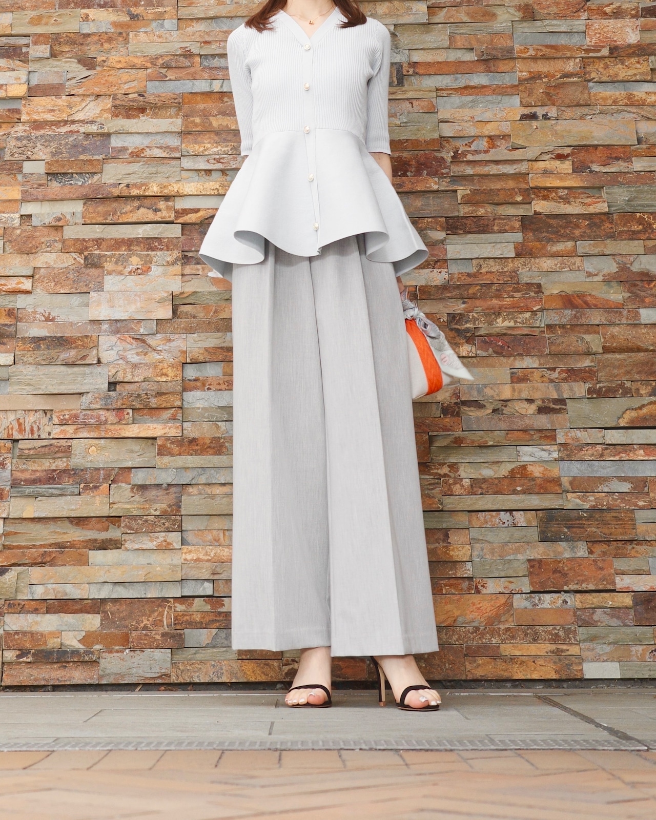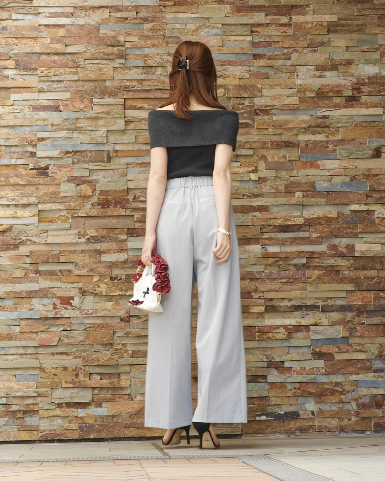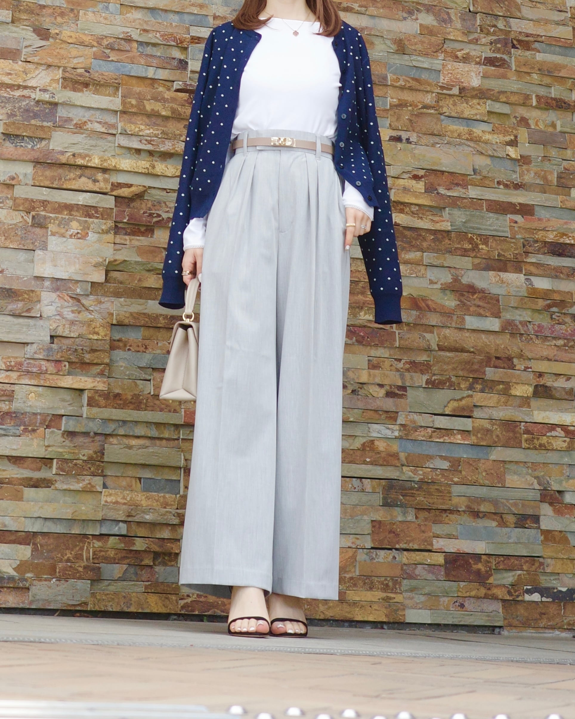 ribbon tuck pants / light gray