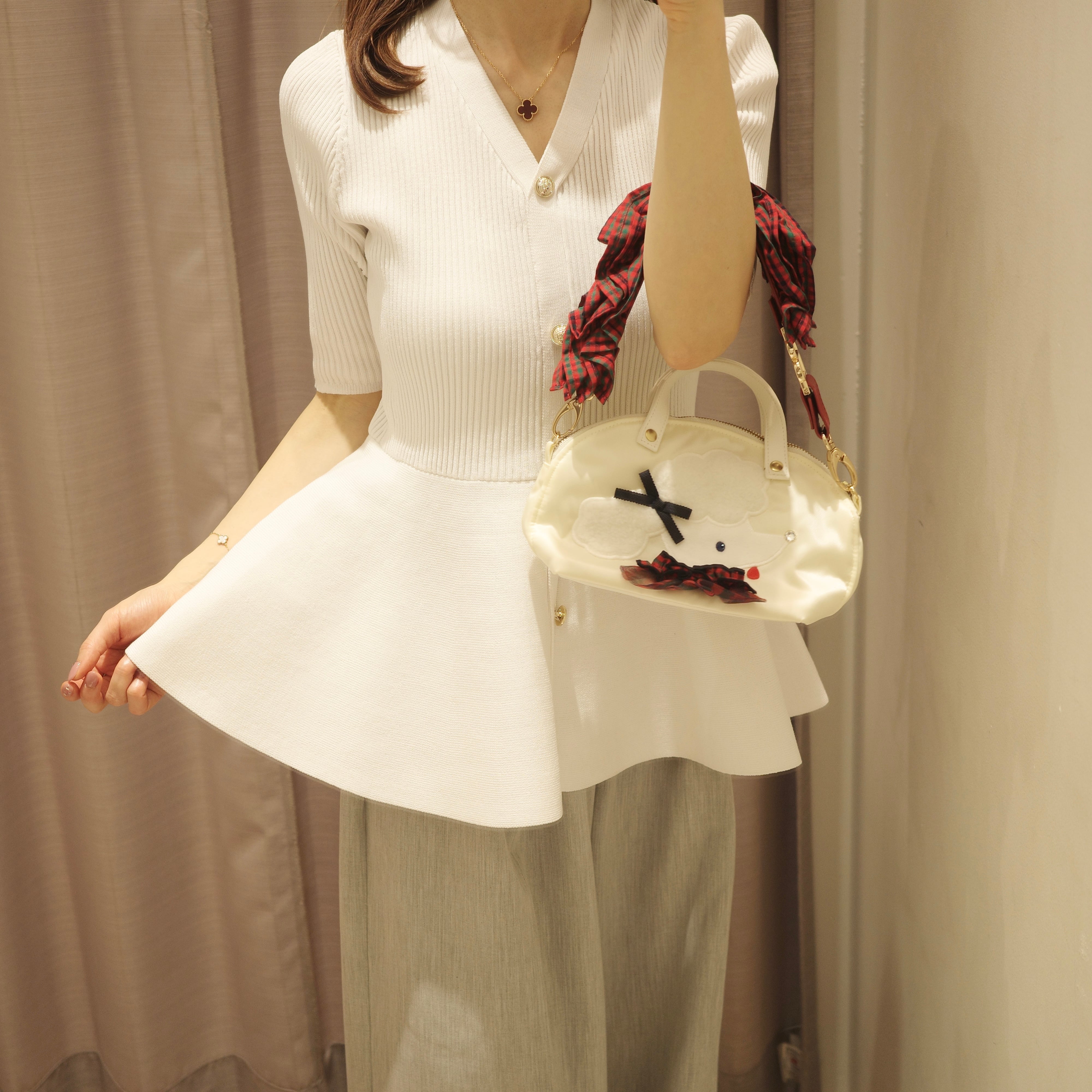 •後ろポケットは、ヒップのラインを美しく見せるために、あえてフェイクに。グログランリボンを施したことがポイントで、商品名の由来になっています。