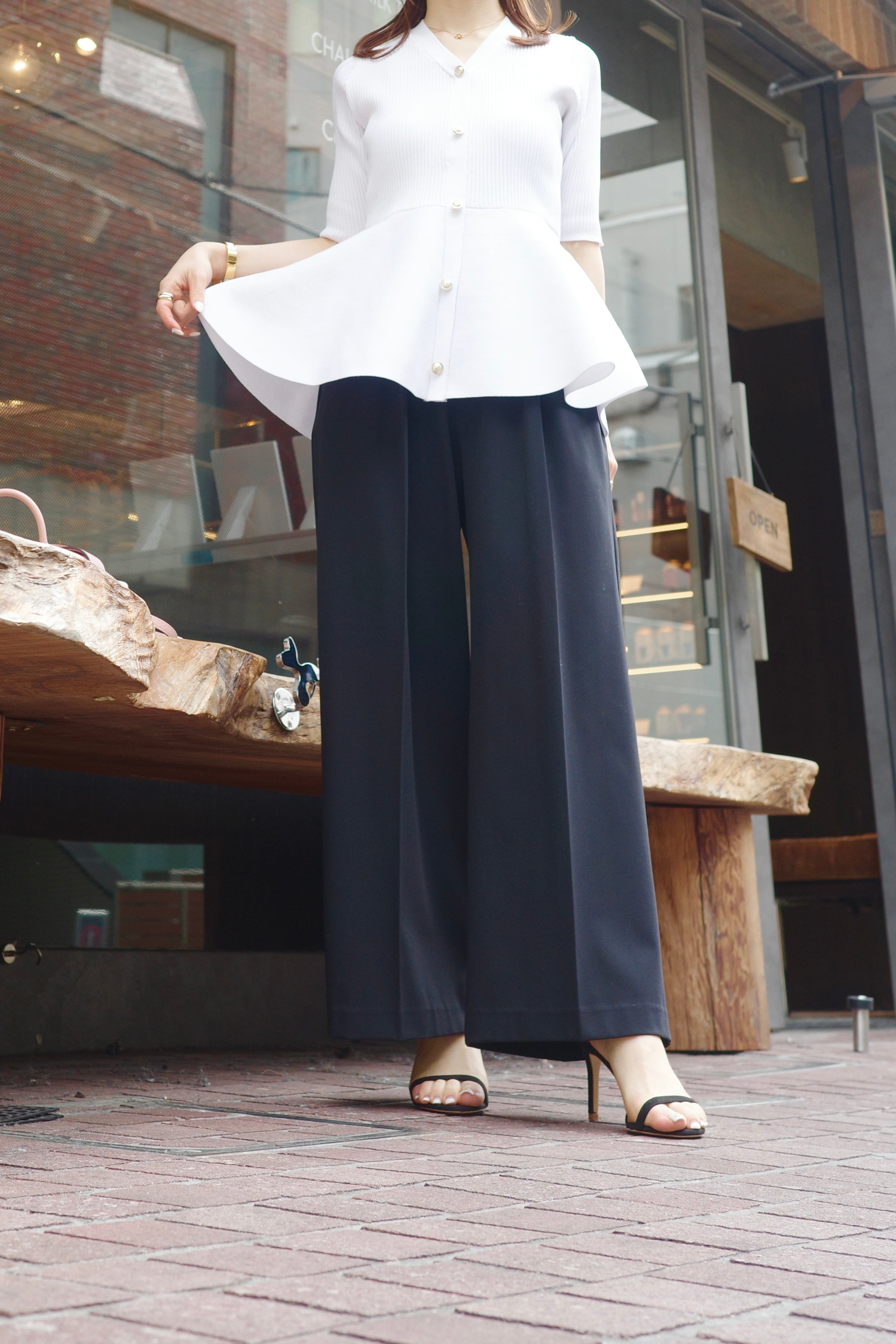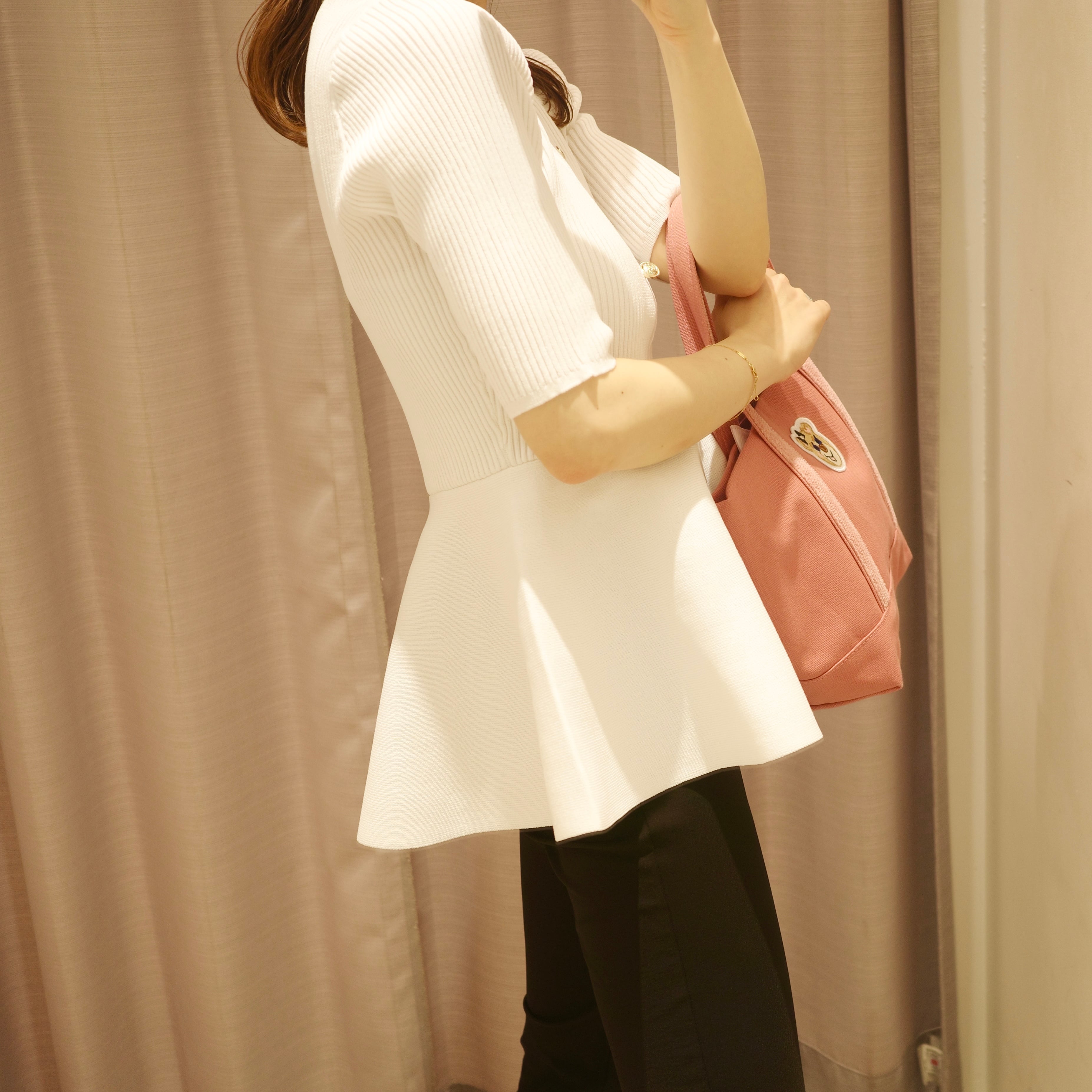 gold button peplum knit / white