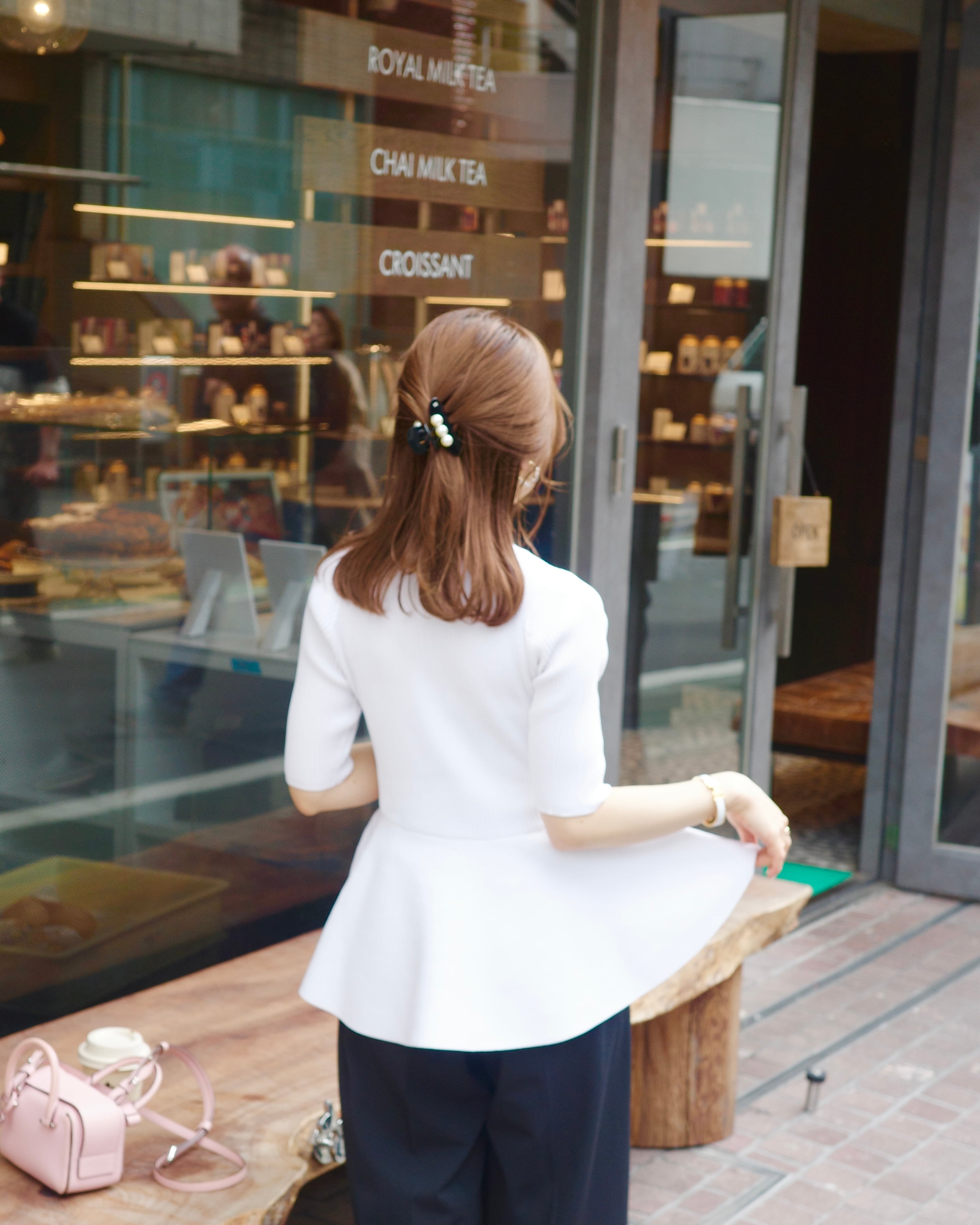 •ほどよいフィット感と切替位置を高めに設定することで、小柄さんがワイドパンツや細身のパンツに合わせたときにバランスよく綺麗に着こなせるシルエットに仕立てました。
