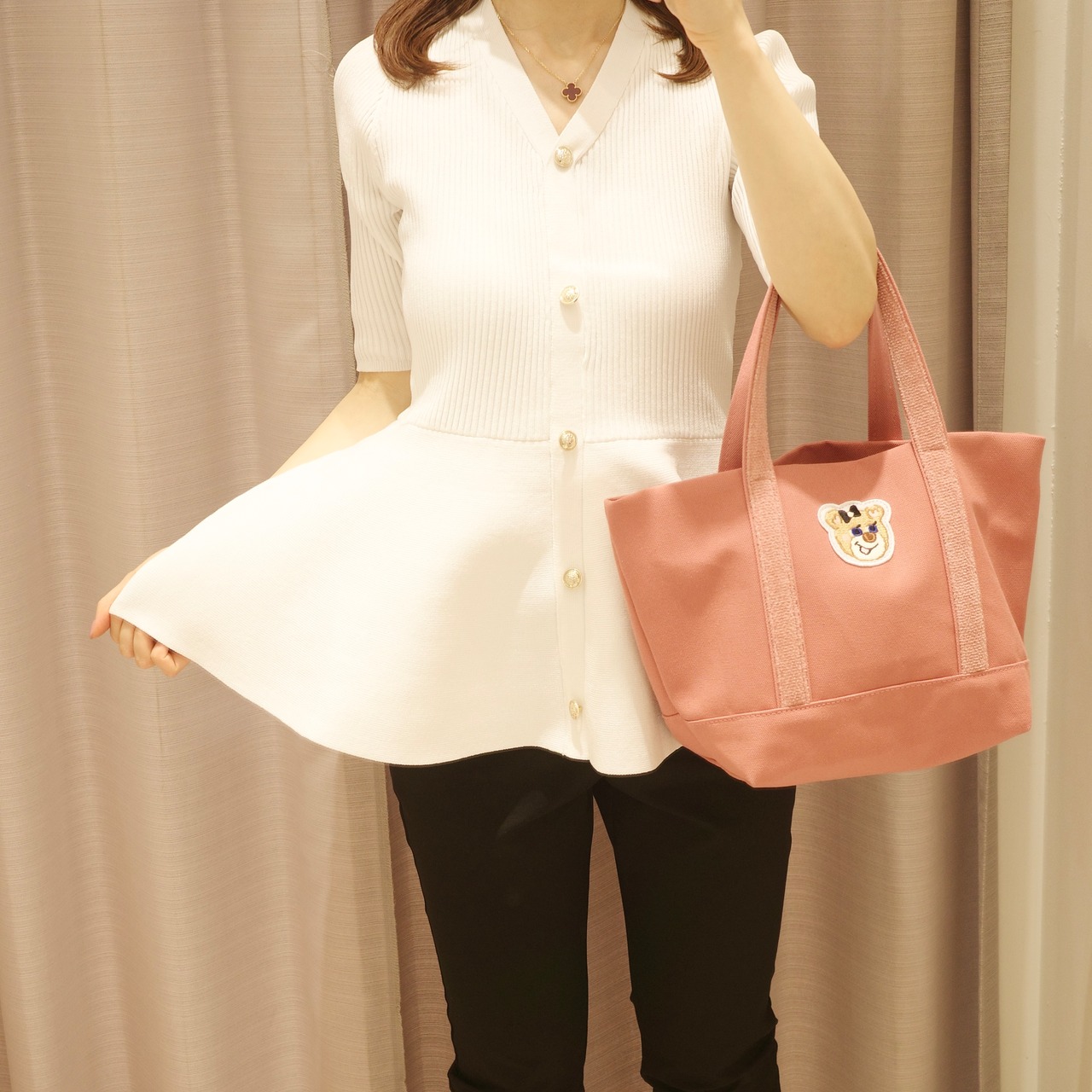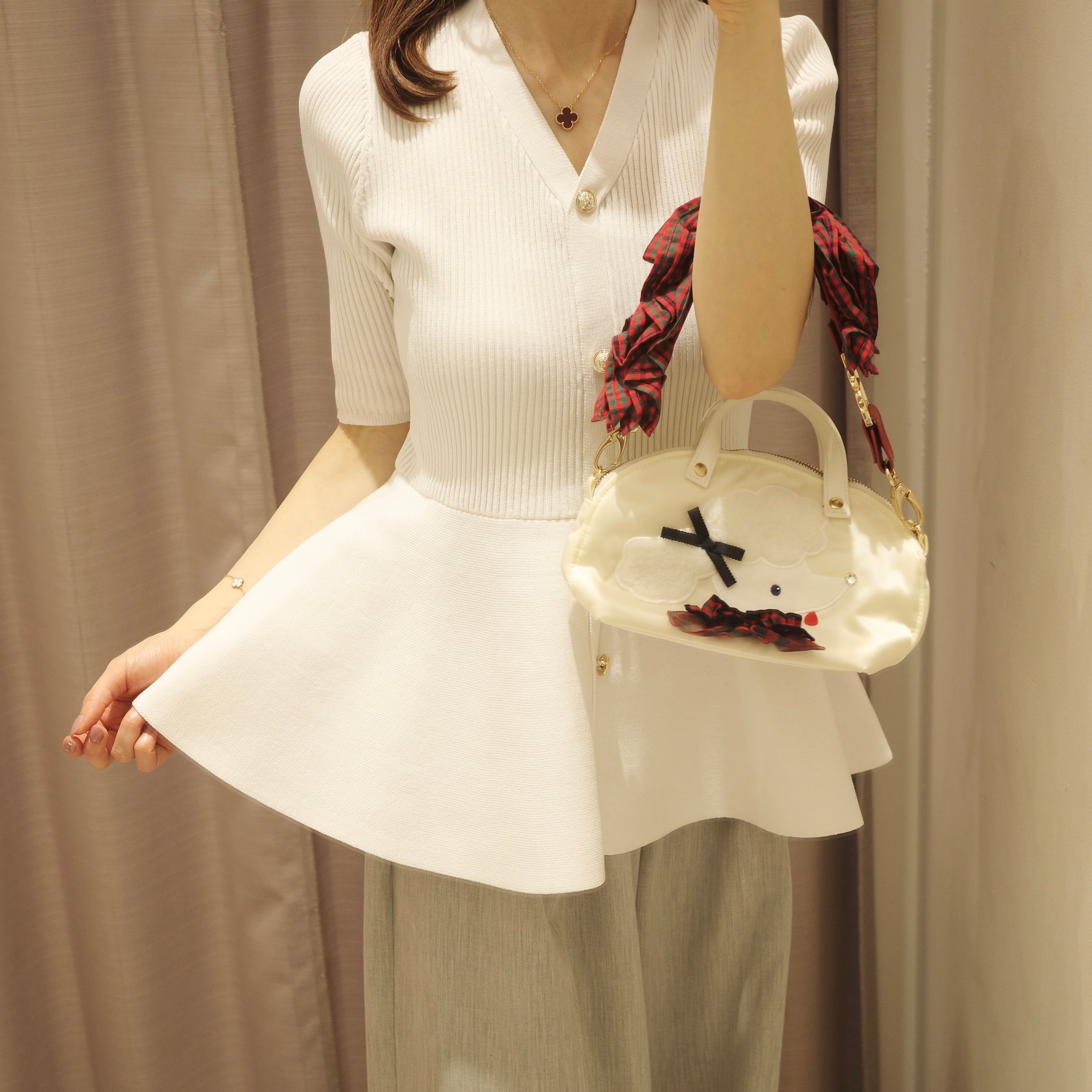•ウエストから女性らしくふんわりと広がるペプラムデザインがスタイルアップ効果を高めてくれます。