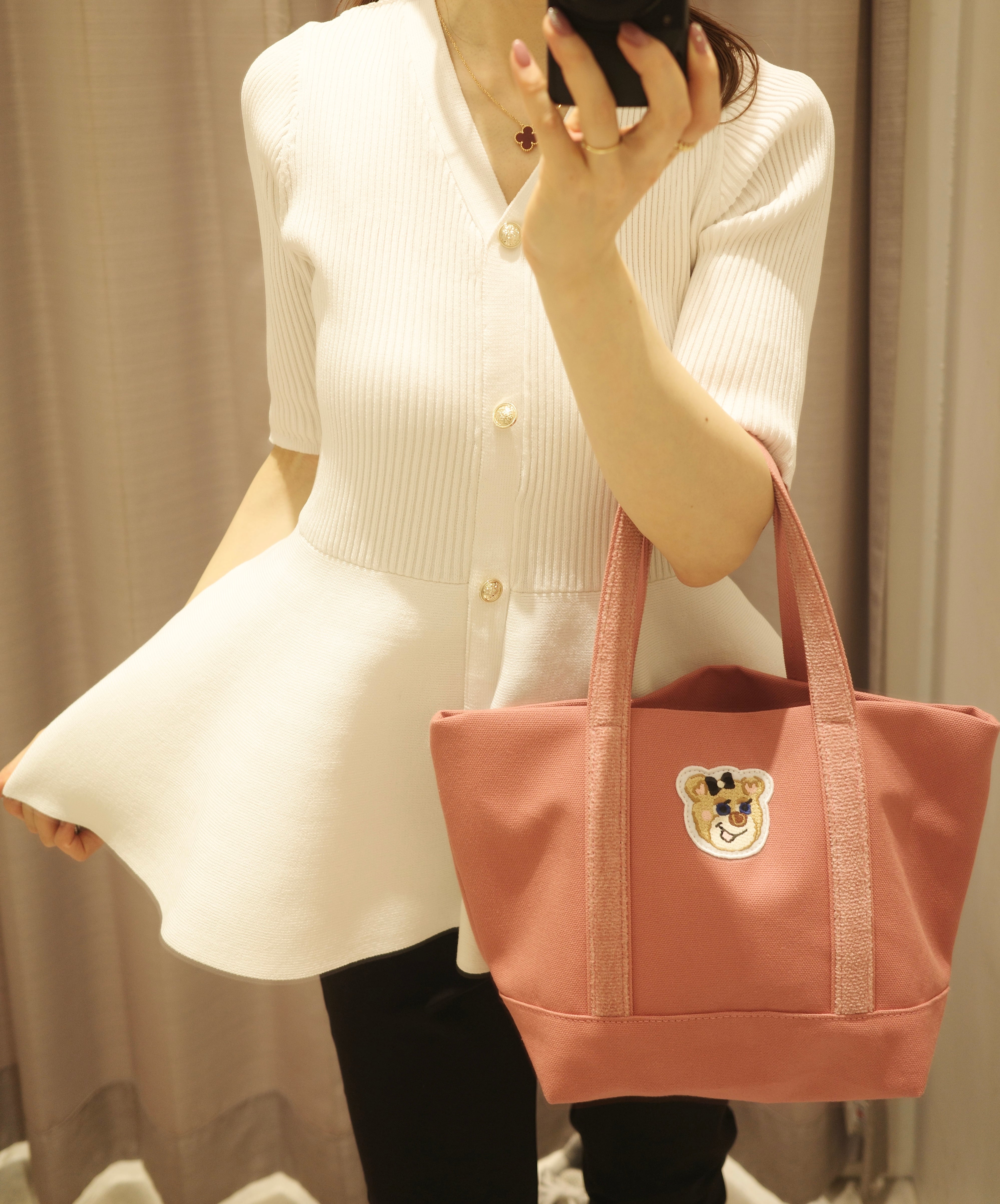 •背中には、hitomiのオリジナルロゴプレートを添え、後ろ姿もエレガントな印象に。
