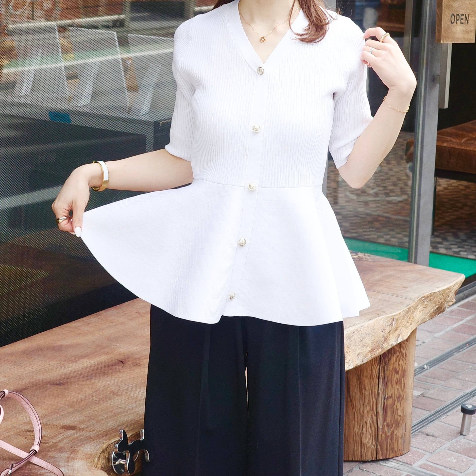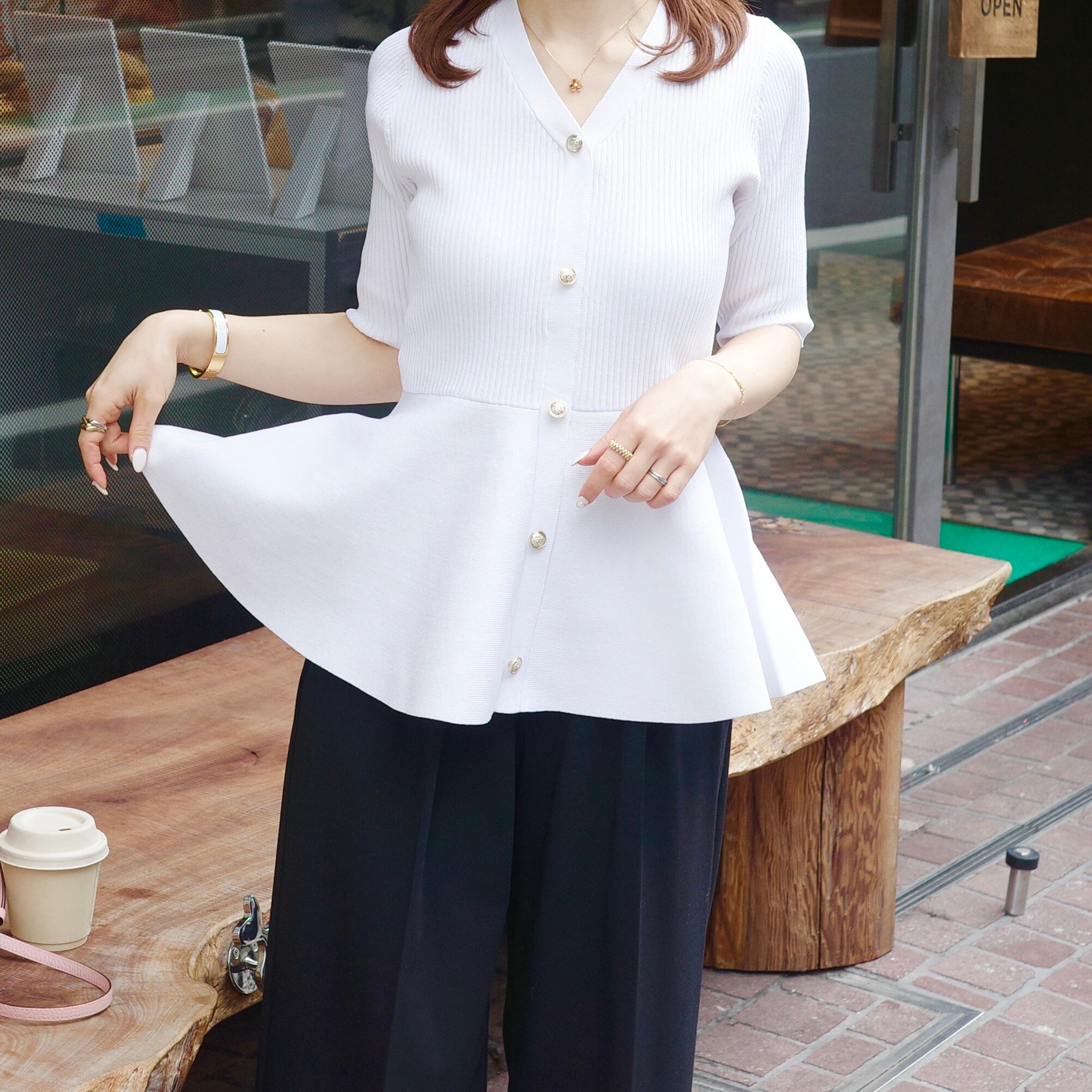 gold button peplum knit / ゴールドボタンペプラムニット